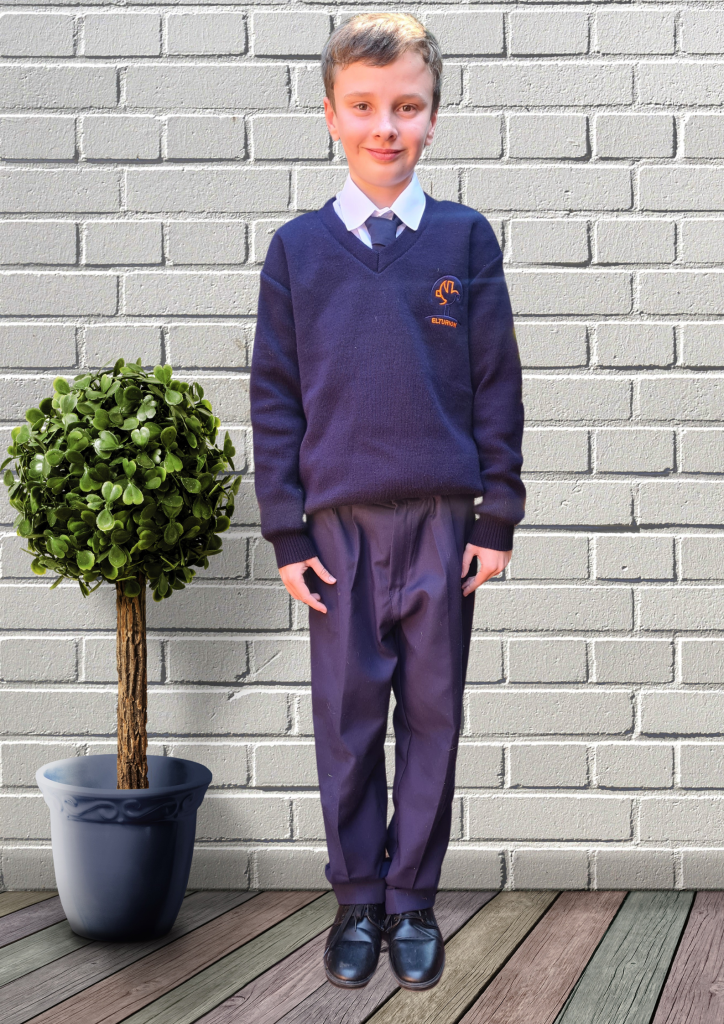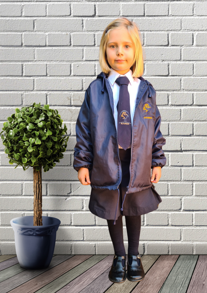 | Winter: | White Long Sleeve shirt. No logo. Navy blue trousers. Navy blue long socks. Navy dri-mac with logo. School tie. Navy Jersey. Black School shoes. | |