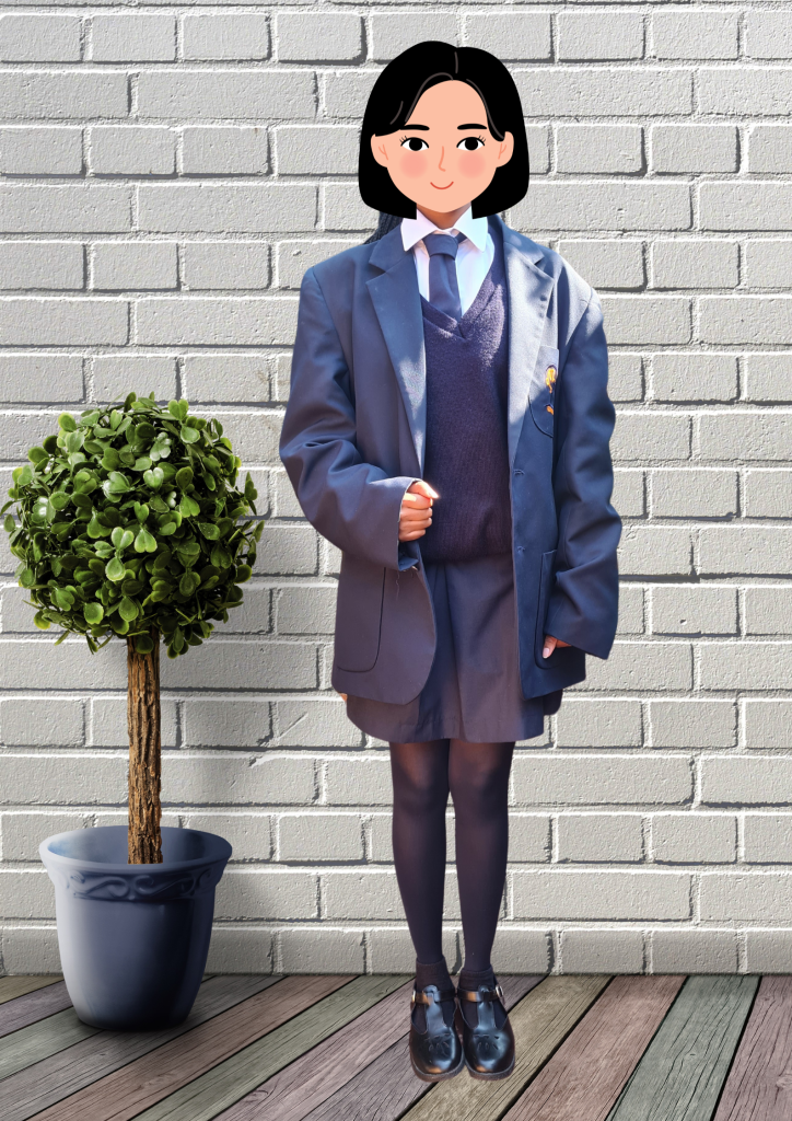 | Winter: | White Long Sleeve shirt. No logo. Navy blue trousers. Navy blue long socks. Navy blue blazer with logo. School tie. Navy Jersey. Black School shoes. |